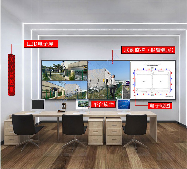 4、每個防區的脈沖圍欄需要和現場的監控形成聯動,並且需要根據設置的防區做成物理電子地圖,配合聯動,綜合分析周界報警情況。