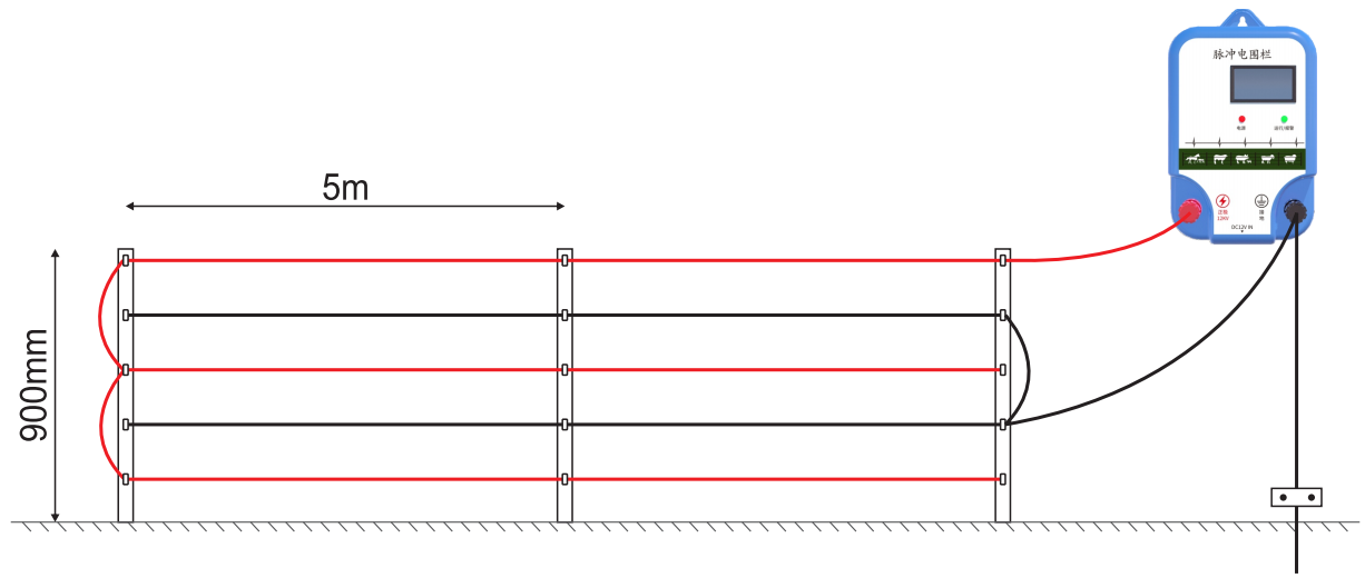 然後接上畜牧電子圍欄主機並給主機通上電即可,使用非常簡單不需要複雜的技術含量。接線方式如下圖: